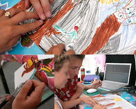 Over a month ago we had a lovely 'Welcome home' festival in our neighbourhood. M spent a long enjoyable time to make her first animation movie out of her own drawing.