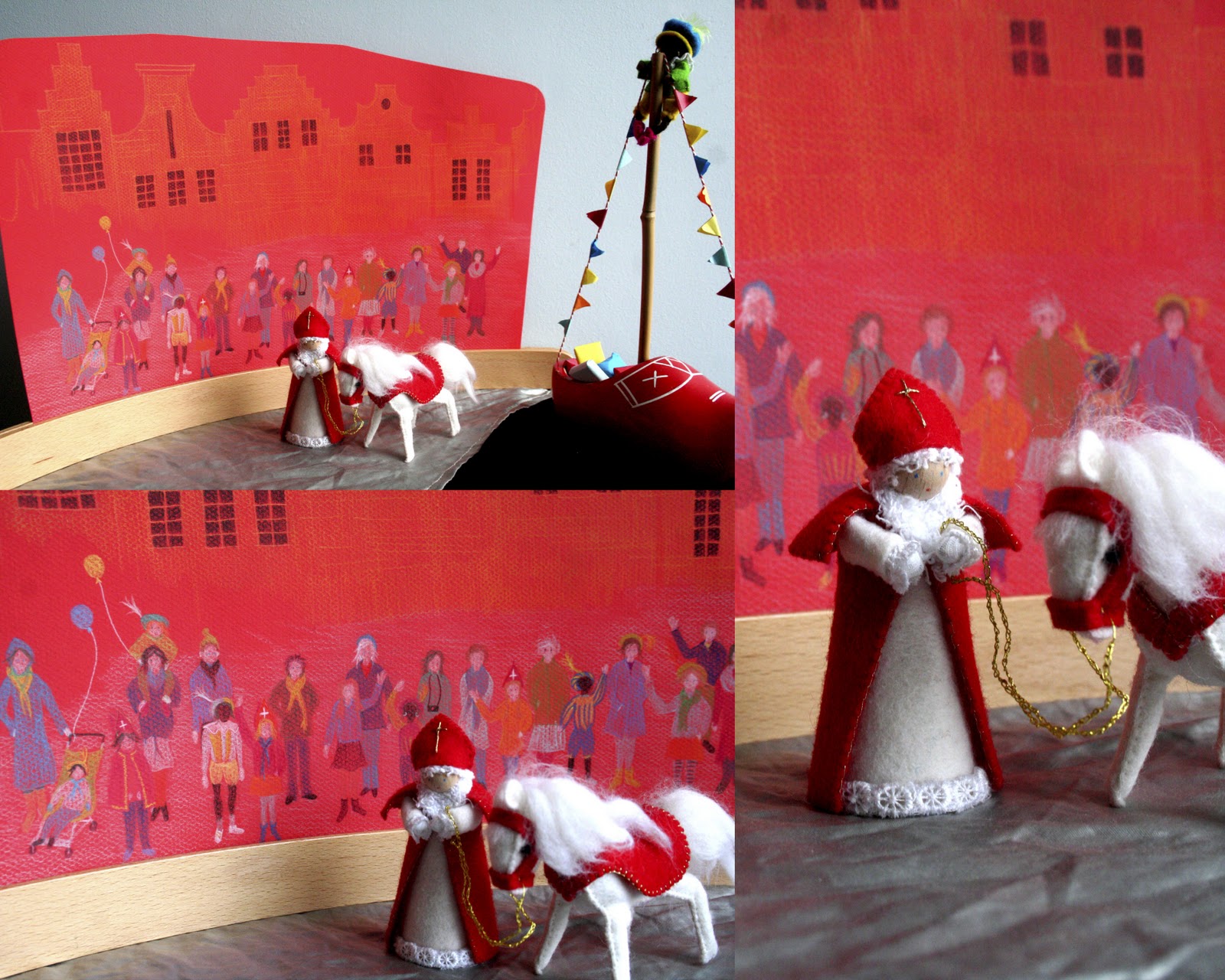 But since that day there are plenty of Sinterklaas activities in our house: M and L put their shoes next to the terrace door (we have no chimney) in great expectation, are wrapping fake presents (each of them got half a roll of Sinterklaas wrapping paper in their shoes), wore Sint and Piet costumes, made this Sinterklaas table (autumn disappeared in a box again...), read big red books again and again.