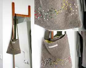 On a second-hand market in school I bought this bag a little while ago. Because it was hanging quite unattractively on our mirror I decided to cheer it up a bit. Without any plan I just started making French knots and this is where it ended. To cover all threads on the inside I made a lining too.