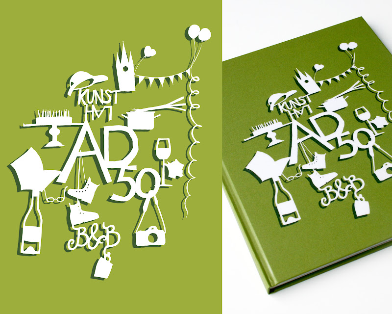 The making was great fun: to work in a team with A, to layout the booklet and last but not least to design the cover, inspired by the very beautiful paper cuts of Yvette. Btw, in this case there was no paper cut at all, but the cover grew out of scanned handsketches, that were composed in Photoshop and in the end provided with a digital shadow.