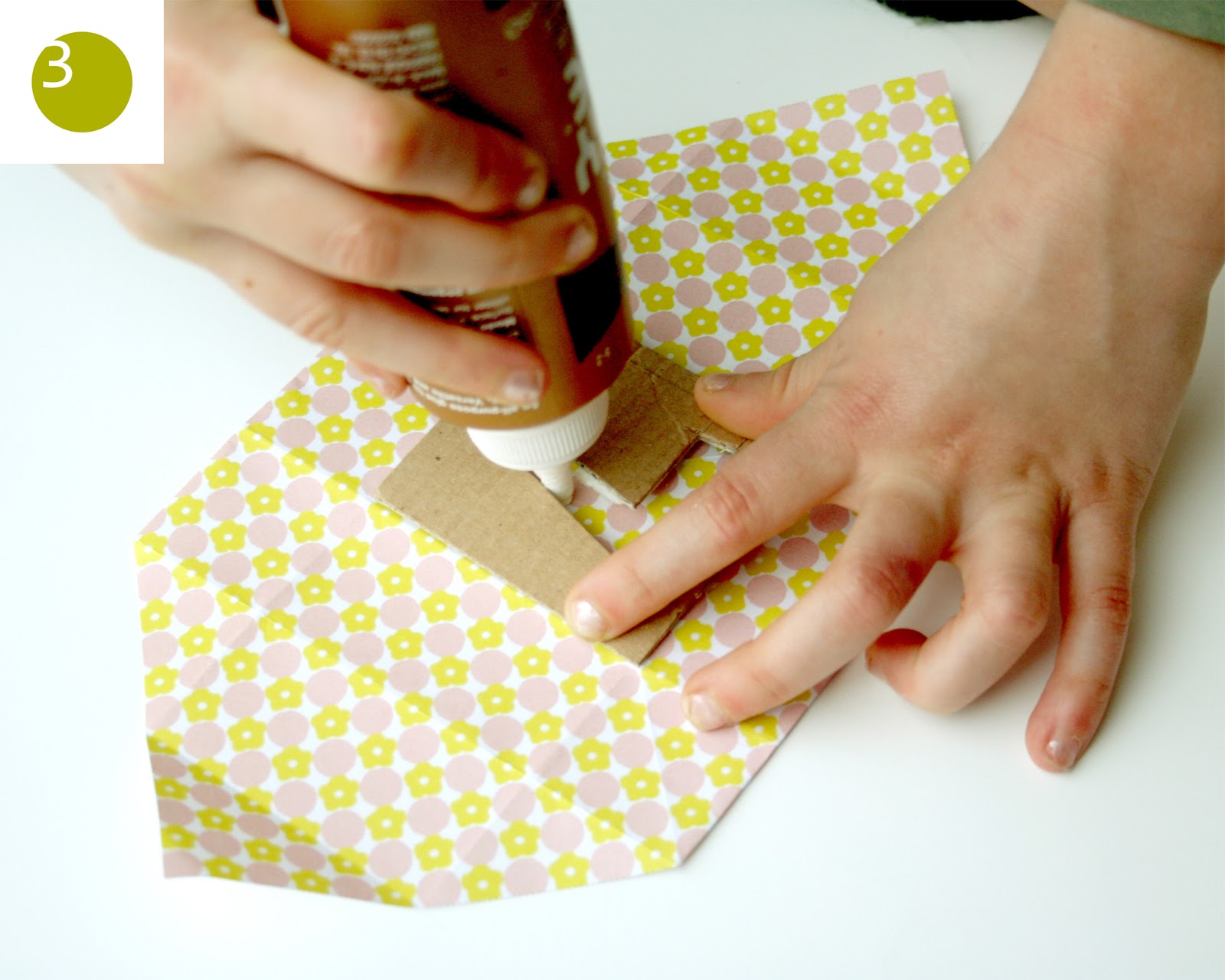 This is what you need to add the sparkles to the lids. We partly folded the lids using the 18 cm paper squares until still being able to lay them flat. For a bigger amount like in our case I recommend to make a little template out of cardboard. To avoid the glue sticking to the paper I added some pieces of felt (to stick underneath furniture) to create a distance between template and paper. Furthermore Tacky Glue is appropriate for kids because it's water-soluble and doesn't cause any dripping. I used two packages of these assorted sequins and there were plenty left. Plus seed beads in different colors.