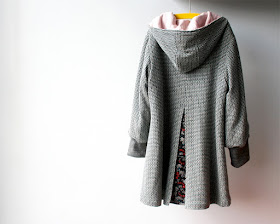 Today was the first day of the coat into use. We discovered that the sleeves are a bit too long - so allow L to grow - and that the pockets could have been placed a bit higher. Wondering how it is on L? Come back later!