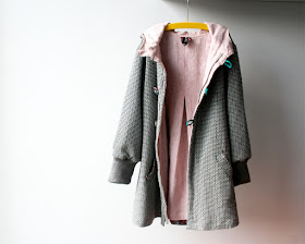 But let's go back to the coat. At first I planned an ocher colored coat, but all of a sudden this plan changed and a Fragile fabric was used. It has a bit stretch, but appeared quite easy to sew.