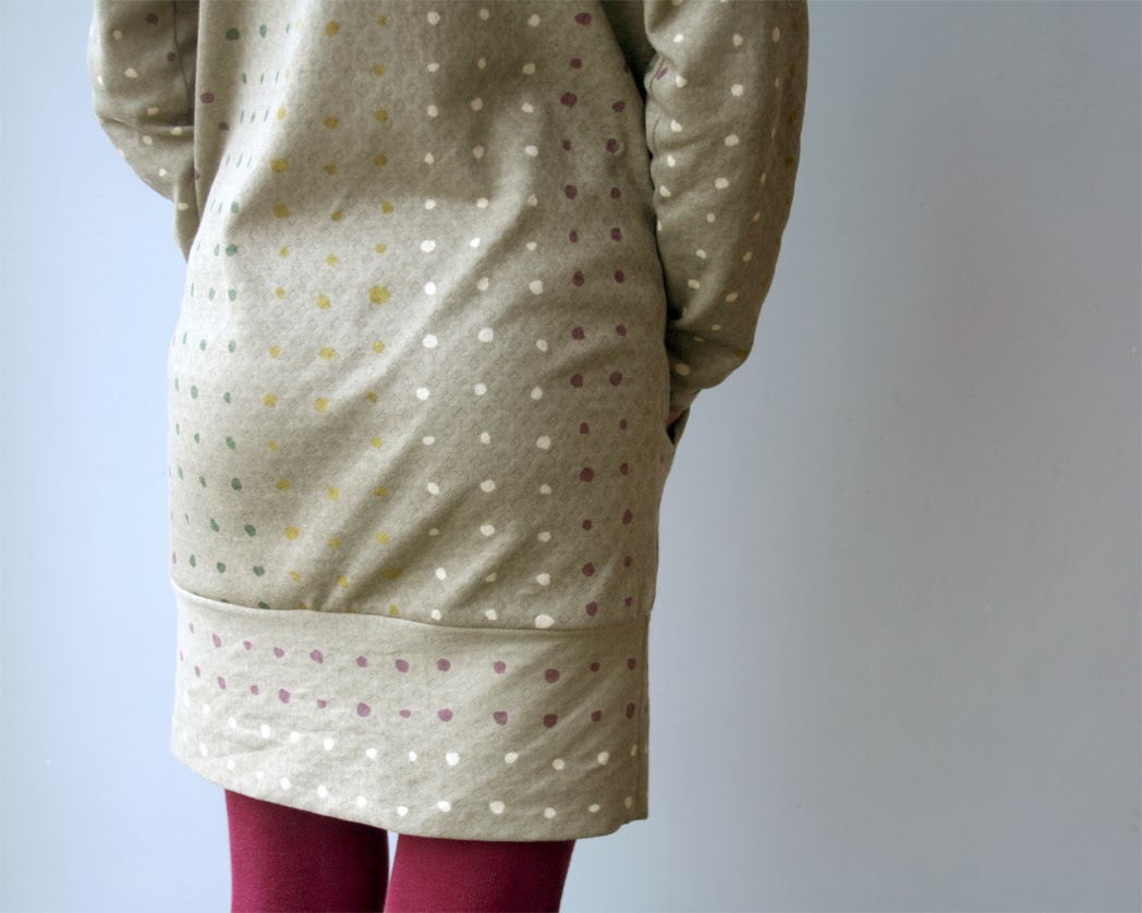 The challenge of this project was to get it out of the available fabric. I bought it at MondaysMilk (check out their new Nani Iro's!) and since there was only 1,7 m left, did it take me one evening puzzling. The inside of the pockets ended up in a different fabric.My daughter is very happy with her comfi sweater and still is after wearing it to school, where some of her classmates reacted with: 'did you forget to take off your pyjamas?' I'm so superproud that she doesn't care about it! Yes, we can learn from our children!
