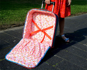 This one is an oldy. I mean, I made it already in January of this year. Meant for L's birthday, but only finished recently! F fixed the frame with wheels and (very important!) pull out handle. Sometimes it just takes long...For years already L was begging for it: a roller case. I don't know where her desire comes from, as we don't have one and simply love our backpacks. I refused to buy one for her before because none of us likes the available ones with awful pictures of Walt Disney, Pokemon or what so ever. A solution that came up: make one myself.