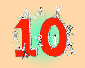 Since L is going to be 10 next week, invitations had to be made for her party. L has planned to go jumping with her friends. So she made small matching drawings, that I made even smaller.