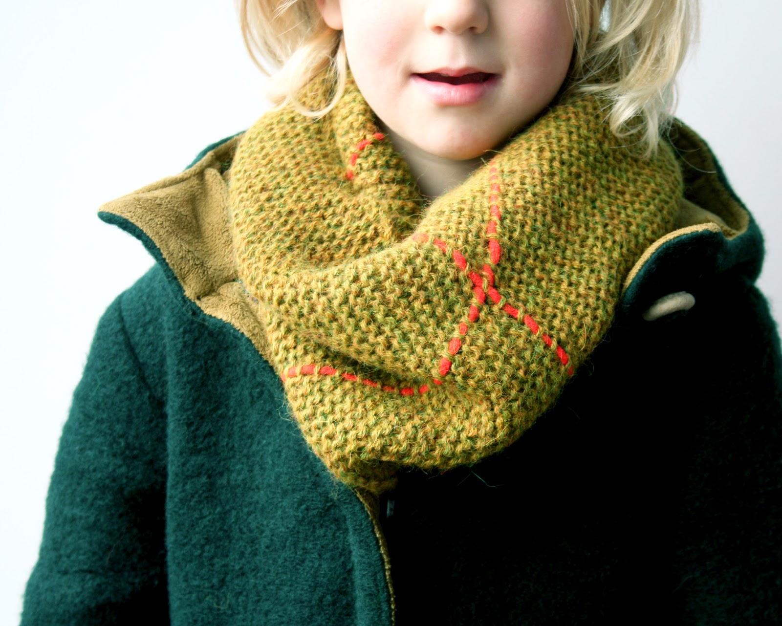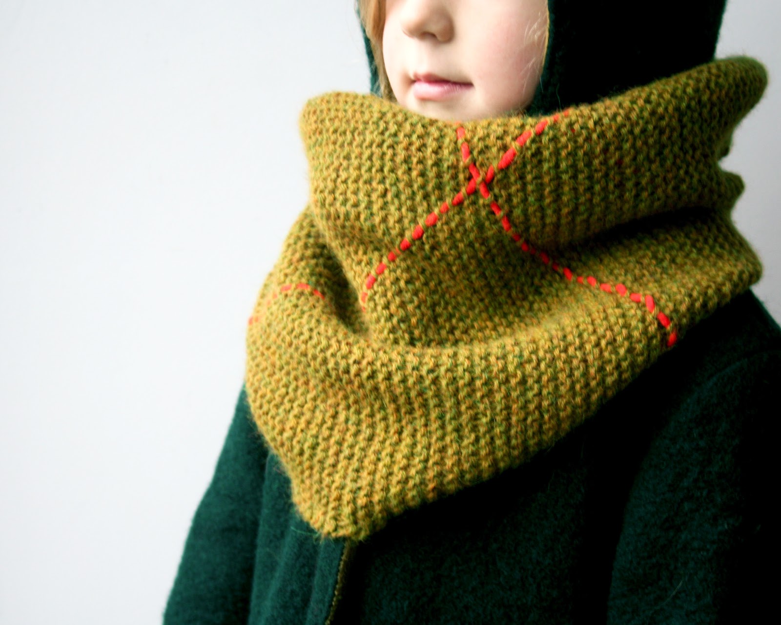 Thank you for this idea! I am currently making an infinity scarf just like your, very plain, in grey an was wondering how to make it a bit more interesting. Your cowl make me think of cross stitches, I am going to try to embroider a rose to the scarf or if that fails, just use plain lines as you have done.